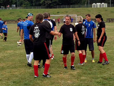 Unsere Ergebnisse konnten sich sehen lassen: 1 Sieg (1:0), 3 Unentschieden (2:2, 1:1, 0:0) und eine Niederlage (1:2). Unsere Verteidiger Stephan + Bernd und der “alte Mann” im Tor haben Schlimmeres verhindert und unsere Stürmer David und Sandro haben für die Tore gesorgt. Unbedingt erwähnenswert ist das Tor von Violi – wir waren alle ganz aufgeregt und Violi wollte unbedingt noch ein Tor schießen, doch leider wurde es nur ein Pfostenschuss – SCHADE. Unser Riesengroßes Dankeschön an unsere beiden Mädels Violi und Nicole, die die erforderliche Frauenquote abgesichert haben.