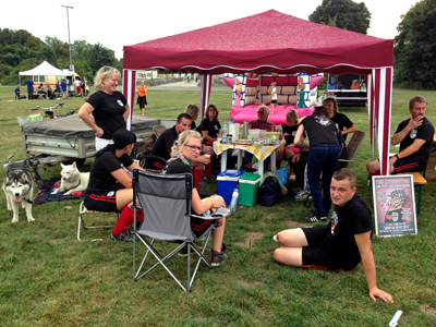 Tja, nun war guter Rat teuer – Isi (trotz ausgekugelter Schulter) hat uns gerettet; sie hat einfach ihre Freunde aktiviert und zum Spielen “verdonnert”, doch das haben wir erst am späten Samstagabend erfahren. Armin und ich waren uns einig, dass wir zusammen mit unseren Anfeuerern und dem gepackten Hänger zur Festwiese fahren und vor Ort entscheiden, ob wir spielen oder zusammen mit Sandra, Kawi-Kids und unsereren Anfeuerern (Elle, Harti, Carmen und Bernd) einen netten Sonntag verbringen.
