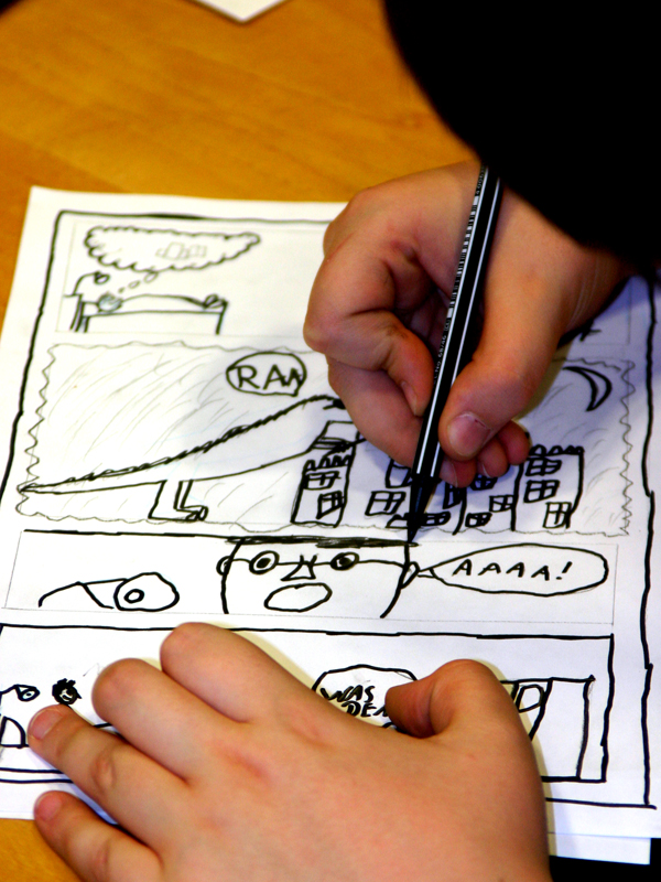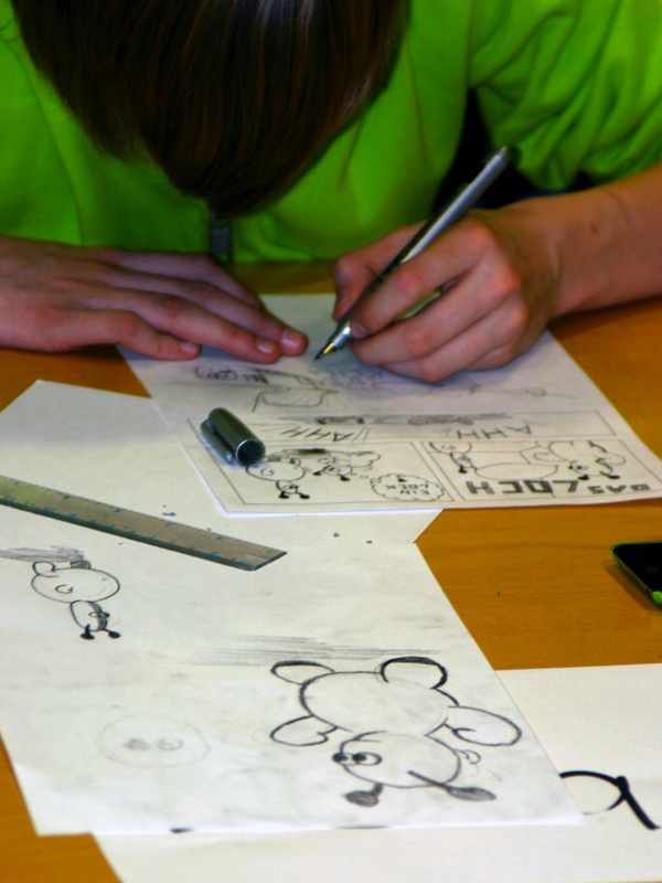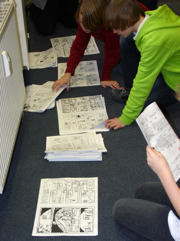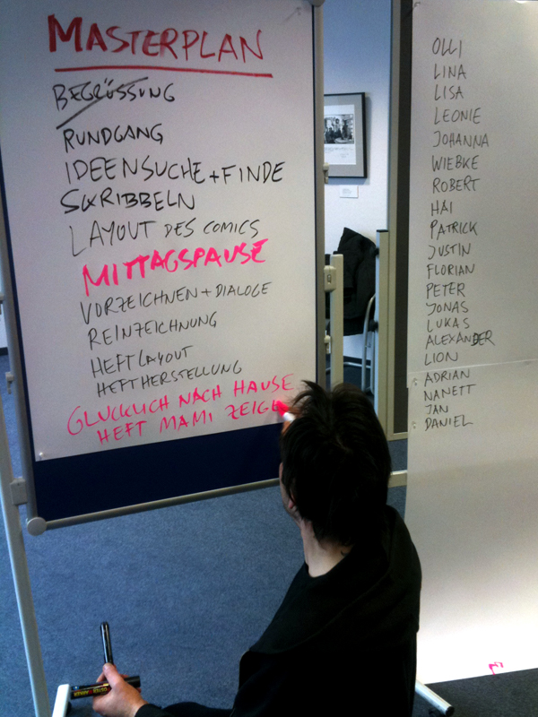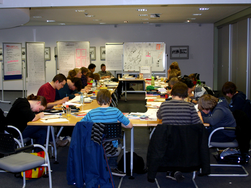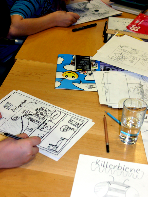Alle 23 Teilnehmer im Alter von 8 bis 20 Jahren zeichneten jeder einen einseitigen Comic und nach 7 Stunden entstand ein eigenes Comic-Heft mit allen Zeichnungen.
