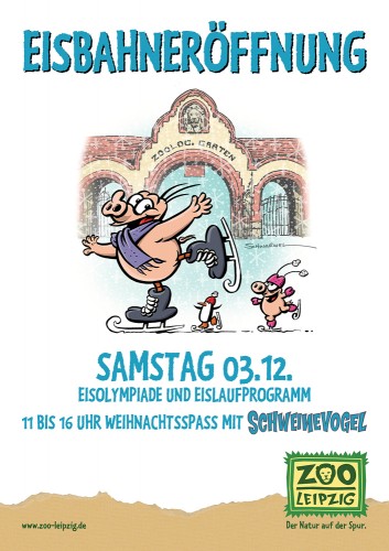 Am Sa 03.12. wird die Eislaufbahn im Zoo Leipzig offiziell eröffnet und euer Schweinevogel ist mit seinen Freunden mit von der Partie.
