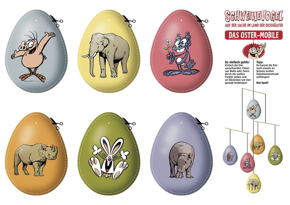 HOSSA, meine Freunde, hier ist mein Schweinevogel-Oster-Mobile für euch zum Selberbasteln. Einfach SCHWEINEVOGEL OSTER-MOBILE-PDF HIER ausdrucken und los gehts. Viel Spaß und wunderschöne Ostern! Euer Schweinevogel Comments are closed. |