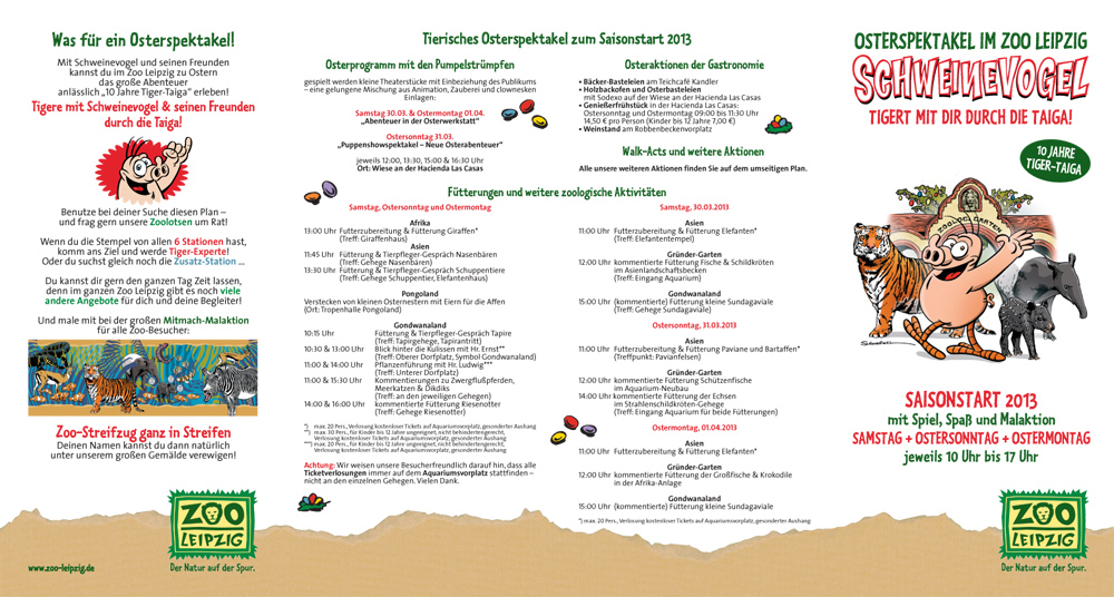 Mit Schweinevogel und seinen Freunden kannst du im Zoo Leipzig zu Ostern das große Abenteuer anlässlich “10 Jahre Tiger-Taiga” erleben!