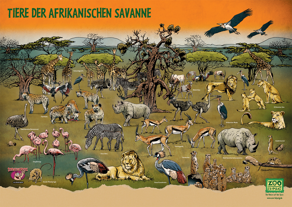 SCHWEINEVOGEL TIER-SAVANNE-WIMMELPOSTER VON SCHWARWEL