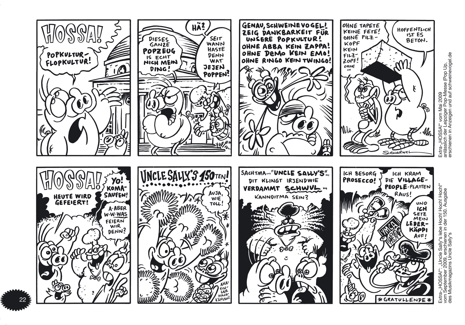 Diesmal bekam Schwarwel Unterstützung von Thowi, der seit Mai 2008 die HOSSA!“-Abenteuer mitgestaltet.