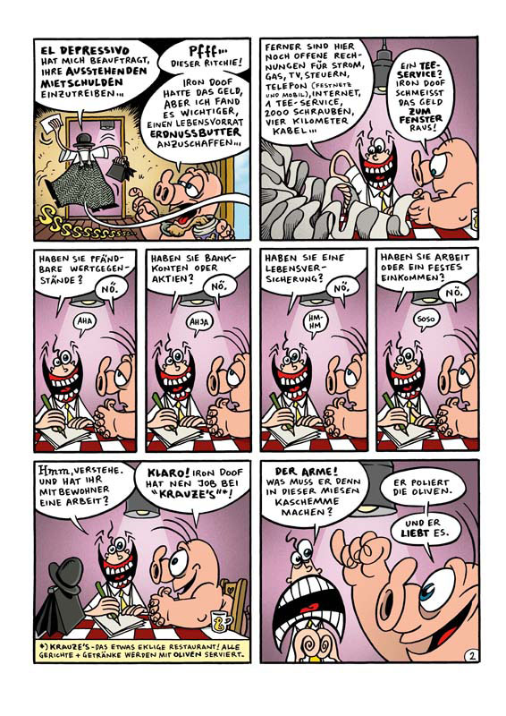 | Ein ganz normaler Tag im Leben von Schweinevogel und seinem Mitbewohner Iron Doof: Während sich Schweinevogel mit fröhlichen Schuldeneintreibern, depressiven Vermietern und desillusonierten Pizzaboten herumärgert, leidet Iron Doof unter der bornierten Blödheit seines neuen Chefs und der Qual der Wahl für das perfekte Abendessen.