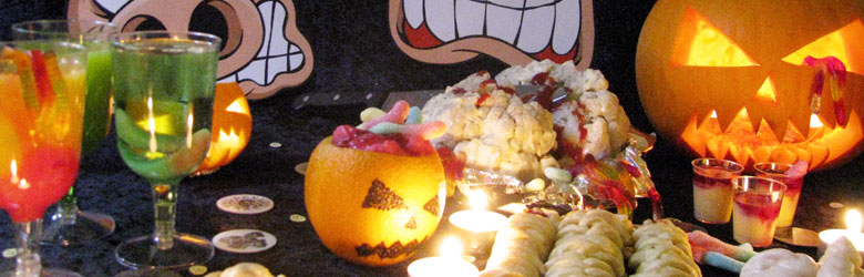 Unabdingbar ist zu Halloween, einen Kürbis auszuhöhlen, ihm mit dem Küchenmesser ein furchteinflößendes Gesicht zu verpassen und ihn dann von innen mit einer Kerze beleuchtet gut sichtbar vor die Tür oder ins Fenster zu stellen.