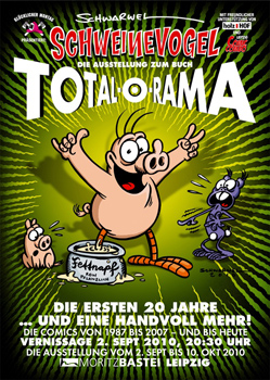 In Anwesenheit des Künstlers Schwarwel und seines neuen 616-Seiten-Buches “Schweinevogel TOTAL-O-RAMA: Die Flegeljahre – Alle Comics von 1987 bis 2007″, herausgegeben von Glücklicher Montag und erschienen beim Holzhof Verlag.