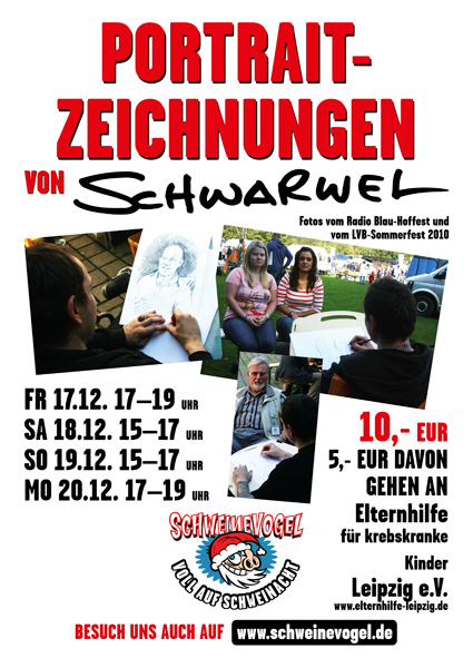 Bei uns gibts Schweinachts-Bastel- und Ausmalspaß, Portrait-Zeichnen mit Schwarwel, supi-dupi Spezial-Rabatt-Aktionen auf meine Artikel, echte Handwerkskunst, Kerzen, Nächstenliebe u. v. m.